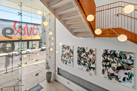 In the Lobby, NJD designed a playful custom light installation, and commissioned a vibrant triptych painting by artist Steve Hahn to bring new energy to this formerly barren space.
