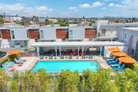 This luxury loft building by architects Koning Eizenberg in the heart of West Hollywood was ready for an update since its 2009 completion. Our multi-year renovation began with bringing the tired exterior Ipe wood back to life with a rich finish.